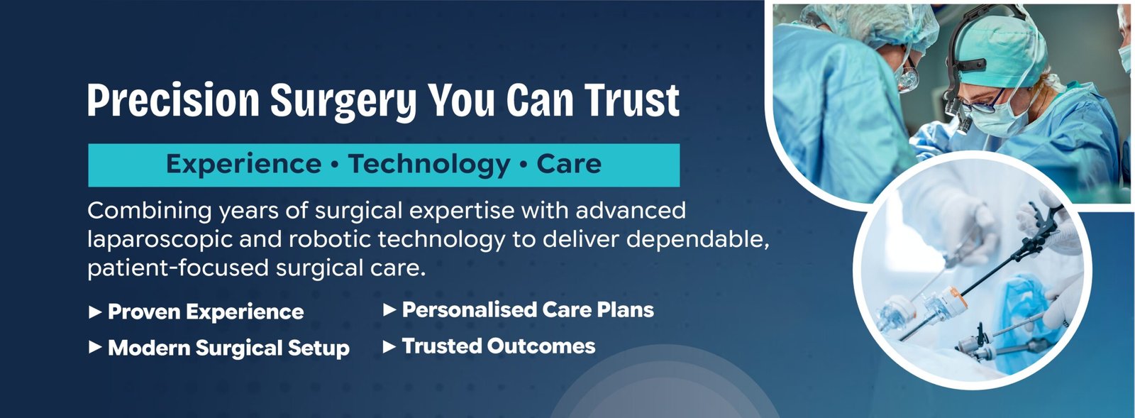Advanced minimally invasive surgery, experienced surgeon, faster recovery, minimal pain, ethical care, safety, transparency, and compassionate patient-focused treatment.
