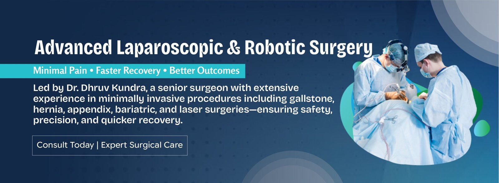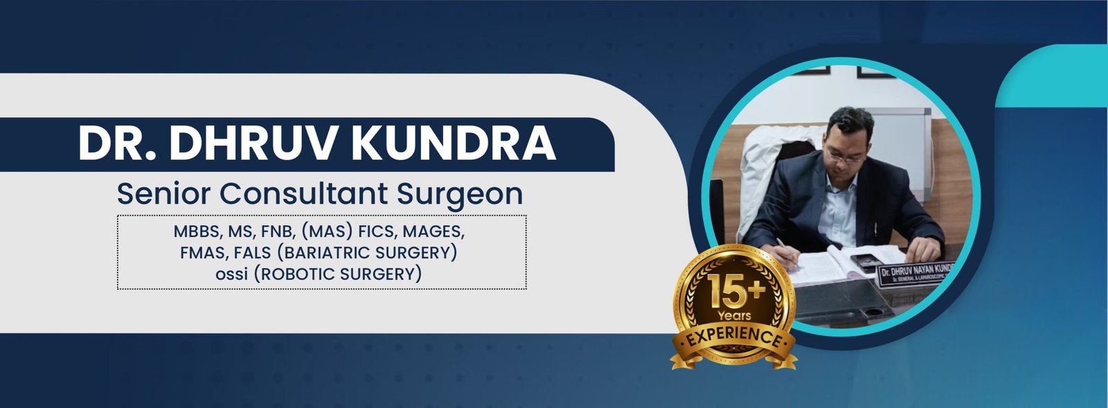 Dr. Dhruv Kundra is a highly respected Laparoscopic, Bariatric, and Robotic Surgeon in New Delhi, known for delivering world-class surgical care with precision, compassion, and integrity. With over 15 years of clinical excellence and 1,000+ successful minimally invasive surgeries, he has earned the trust of patients across Delhi NCR and beyond.